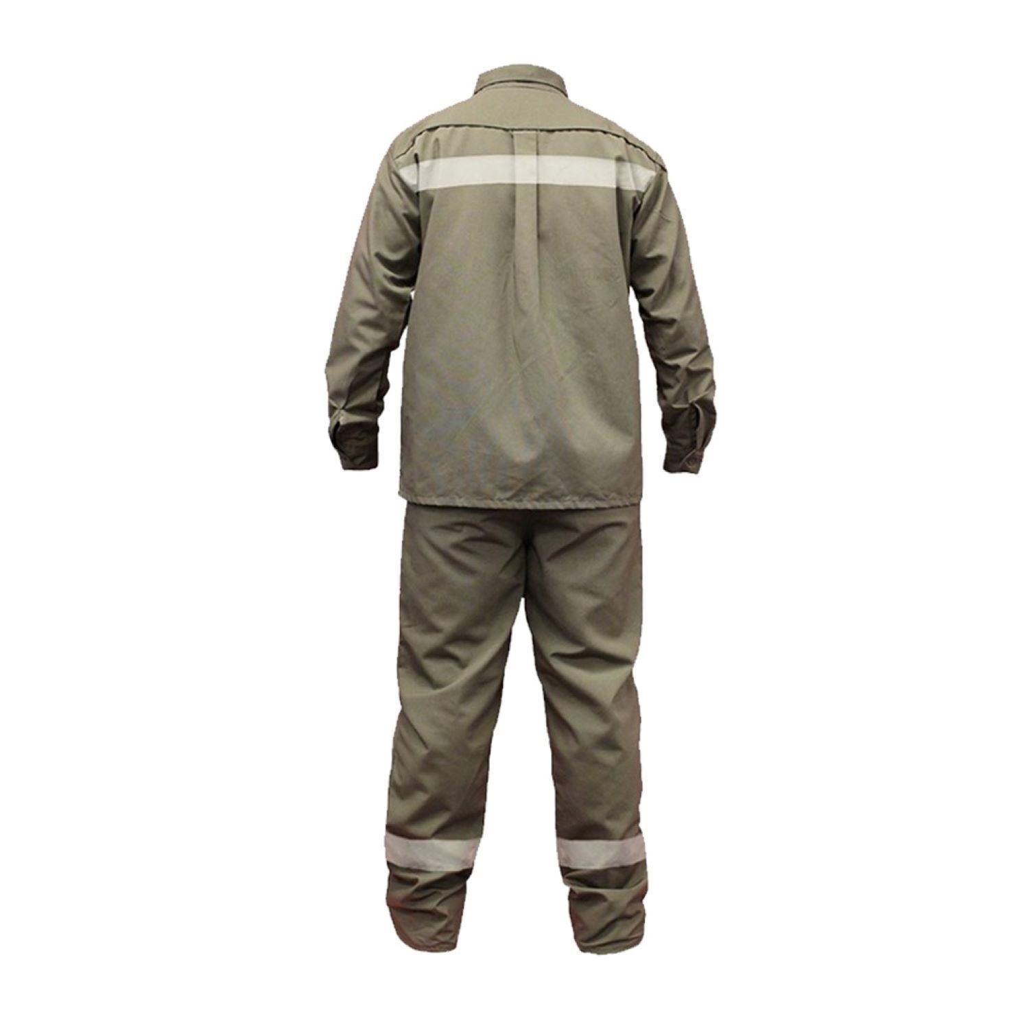 El traje antácido con cinta verde está fabricado con una tela especial antiácida que brinda protección al cuerpo contra la acción corrosiva de los ácidos y otras sustancias químicas. Esta característica es especialmente importante en entornos industriales donde se manipulan productos químicos corrosivos. El traje cuenta con un fuelle en la espalda de la camisa, lo que proporciona mayor comodidad y libertad de movimiento al usuario. Además, tanto la camisa como el pantalón cuentan con amplios bolsillos para facilitar el almacenamiento de herramientas u otros objetos necesarios durante el trabajo. El pantalón del traje tiene un cinturón incorporado que ayuda a asegurar un ajuste adecuado y cómodo. También cuenta con cintas reflectivas antiácidas en la espalda y en la parte inferior del pantalón, lo que aumenta la visibilidad del usuario en entornos de poca luz y contribuye a la seguridad en el lugar de trabajo. El traje antácido con cinta verde está fabricado con un 100% de poliéster, lo que lo hace resistente y duradero.